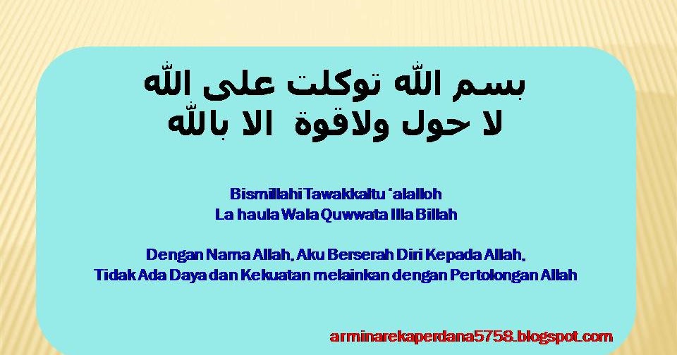 Bismillahi Tawakkaltu Alallah Lahaula Walaquwata Illabillah Jawi